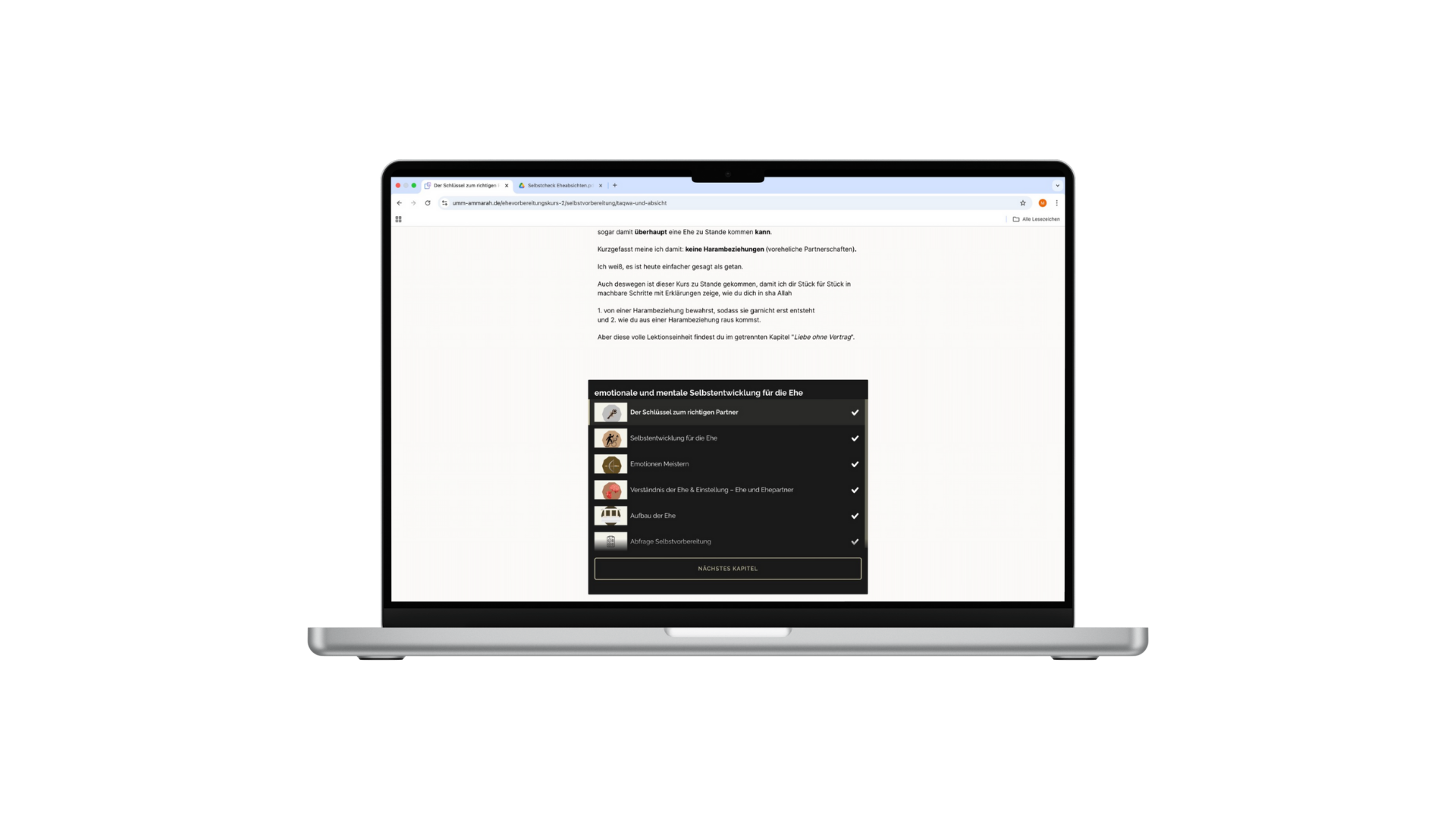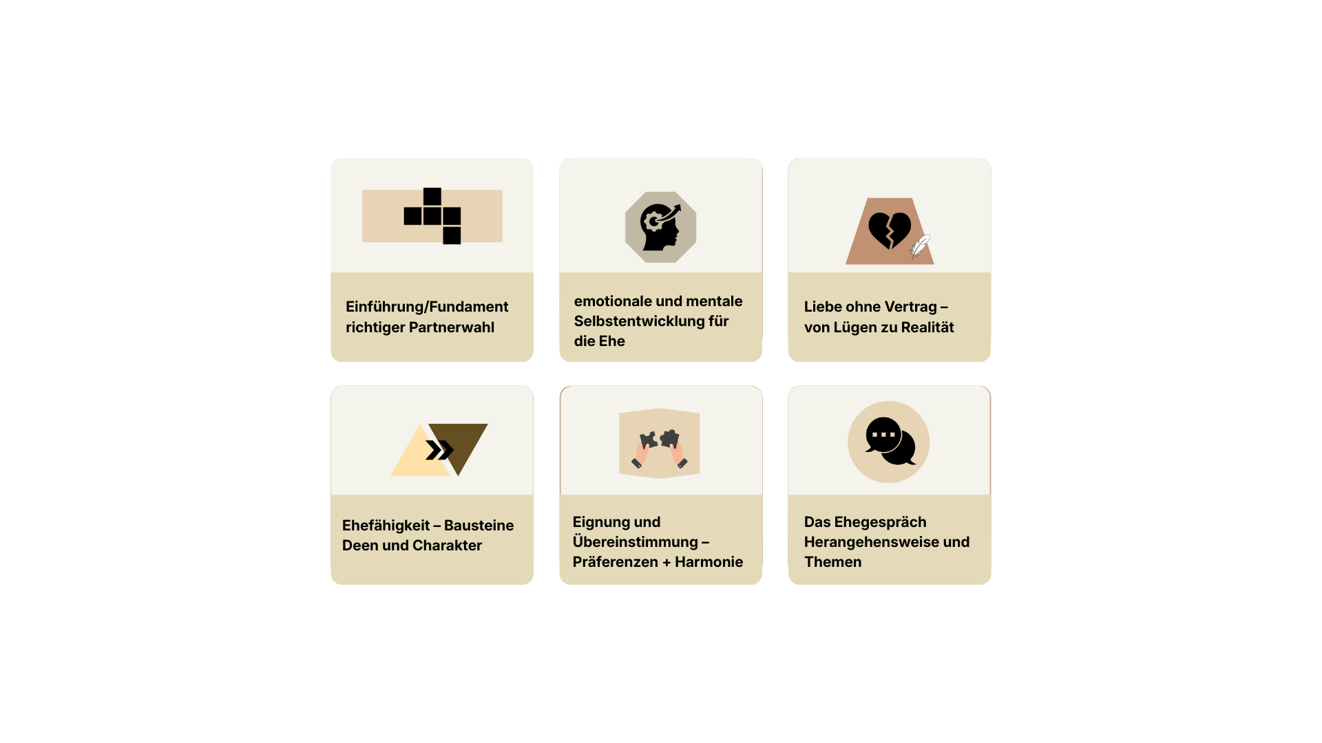Der Kurs besteht aus klar aufgebauten Modulen, die dich Schritt für Schritt durch die Ehevorbereitung führen.